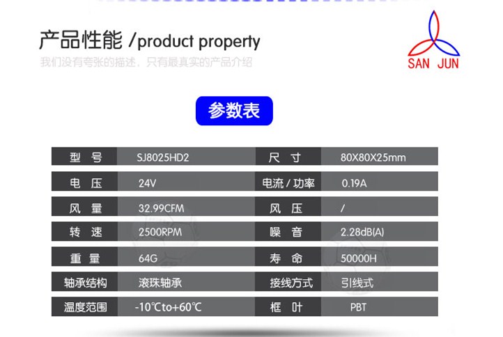 三巨SJ8025HD2 24V 0.19A 8cm 雙滾珠2線風機