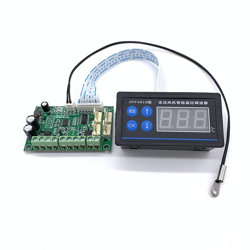 調速器通過檢測到的溫度來控制風機轉速,溫度越高風機轉速越快,溫度越低風機轉速越慢,自動平衡溫度和風機轉速,