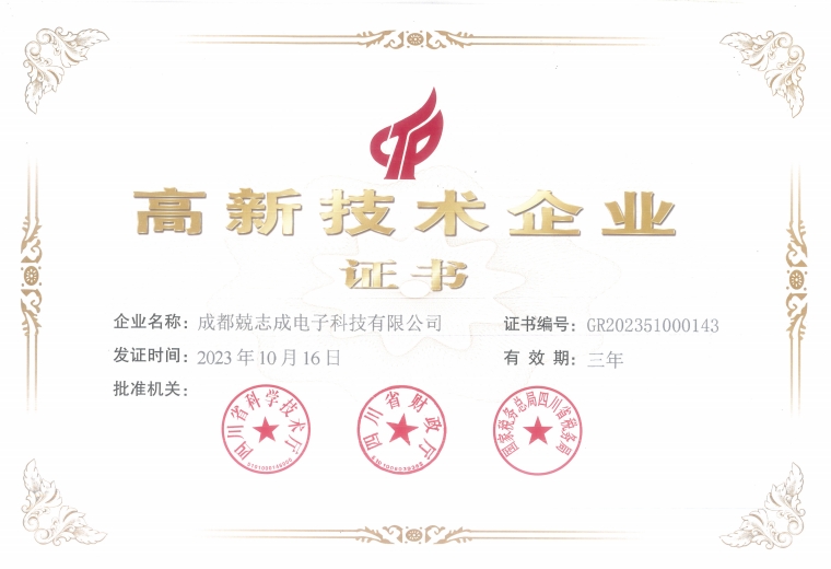 近日,根據《高新技術企業認定管理辦法》和《高新技術企業認定管理工作指引》有關規定,經公司申報、地方初審、專家審查等嚴格的評審程序,我司順利通過2023年四川省第一批“國家高新技術企業”認定并取得了“高新技術企業”證書。